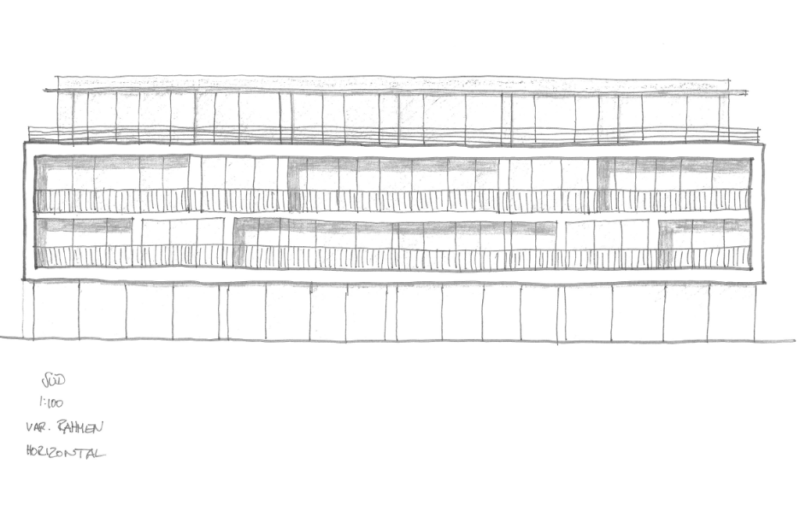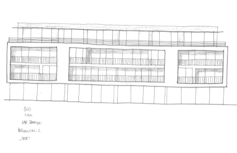 Dies sind erste Ideen-Skizzen zur Süd-Fassade. Darauf folgt die Darstellung in CAD.